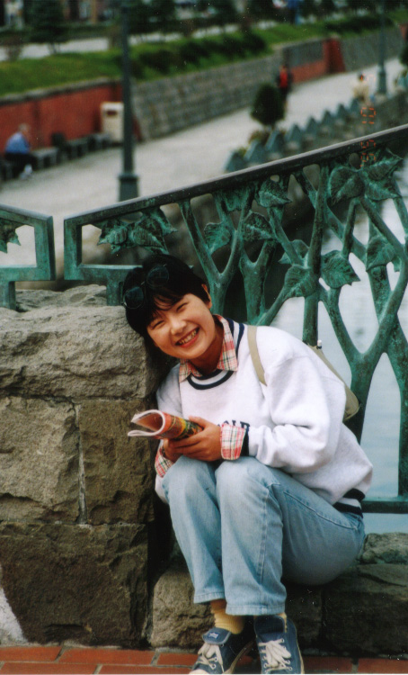 | 北大のポプラ並木の前で。北海道の大地の匂いを感じる? |