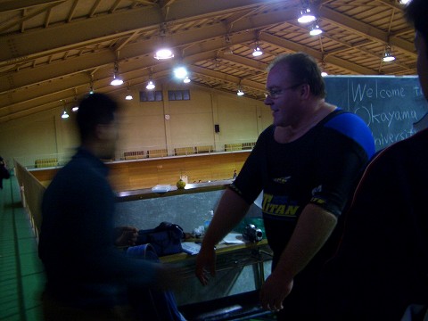 イリノイ大学パワーリフティングのジョンハドソンさんが岡大に来られました。 一緒に合練でトレーニング、ベンチ300Kgにトライしていただきました。ボードベンチの指導もしてもらいました。